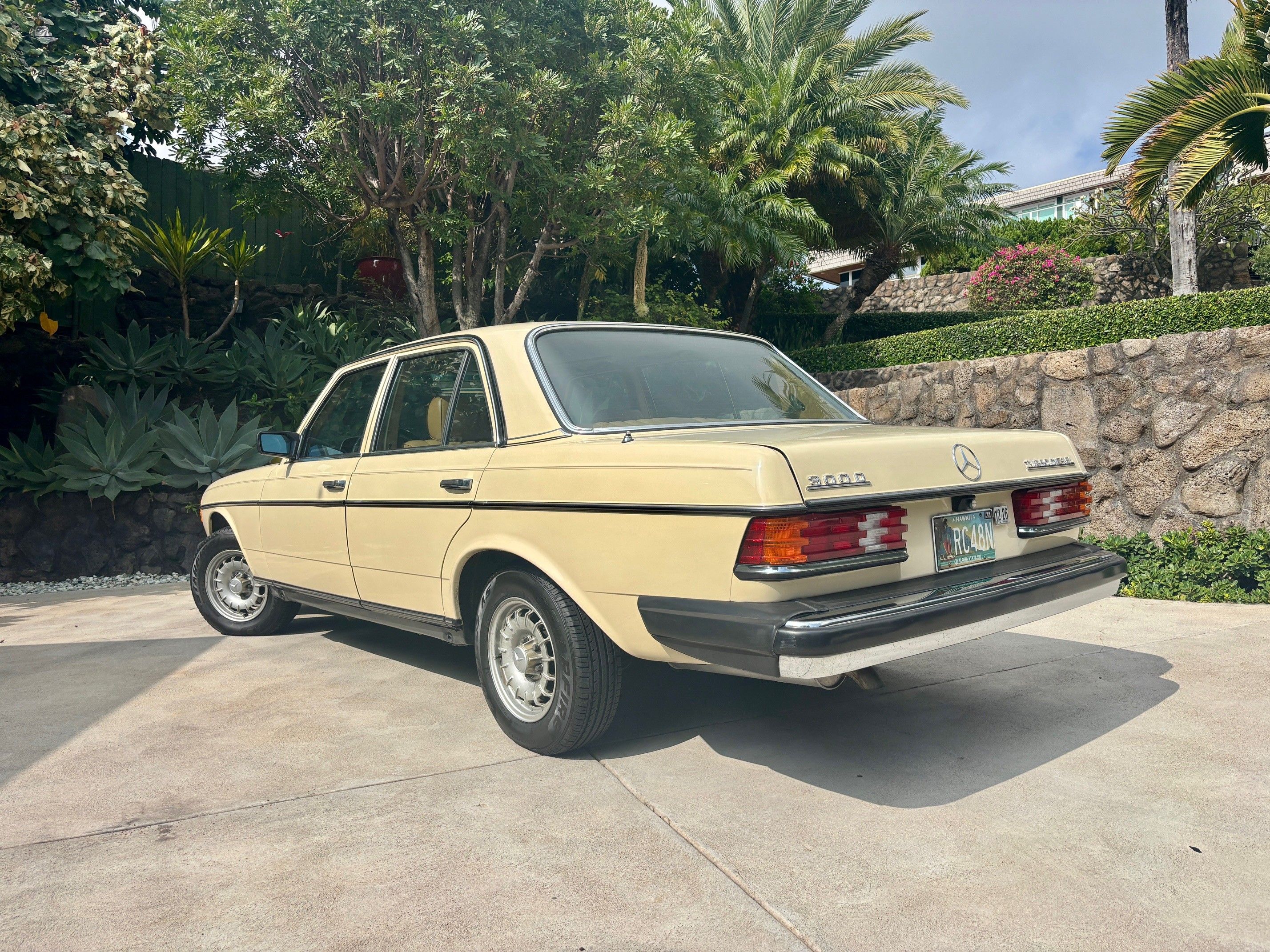 The seller states this vehicle will be sold on a clean Hawaii title in his name. He also notes this 1982 Mercedes-Benz 300D Sedan passed a state mechanical inspection in November 2025 and adds, “the Mercedes runs extremely well.”