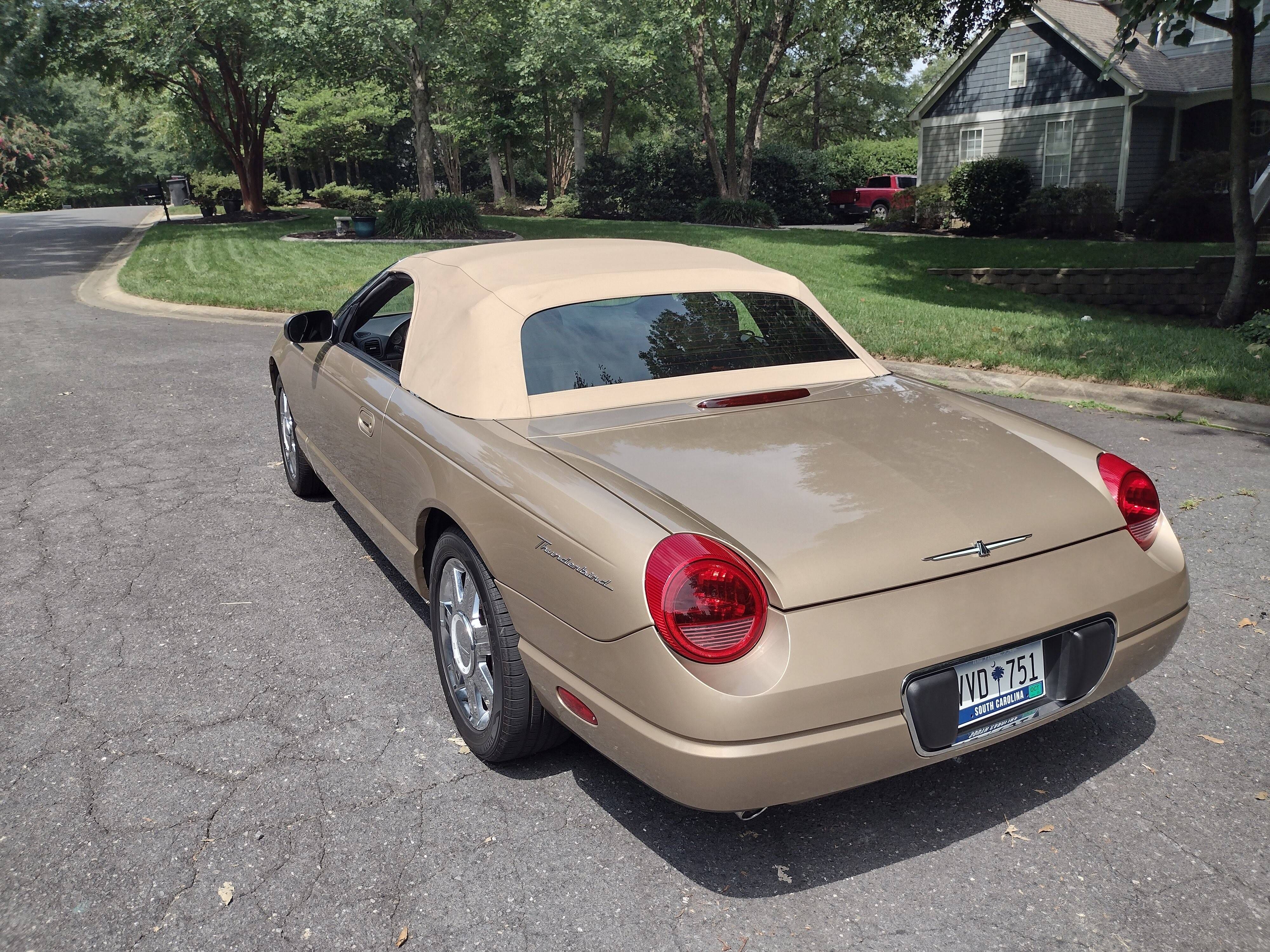 The seller states that this vehicle will be sold on a clean South Carolina title in his name. This 2005 Ford Thunderbird Premium Convertible is offered for sale at no reserve. As a final-year T-Bird, it sports a desirable bronze paint color and comes with both the soft top and the hard top, making it better suited for year-round use.